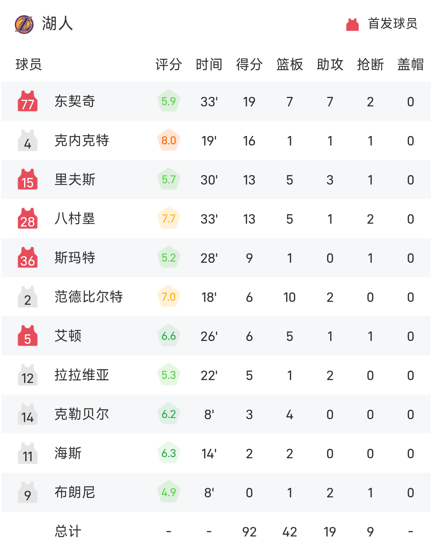 防守端表现亮眼