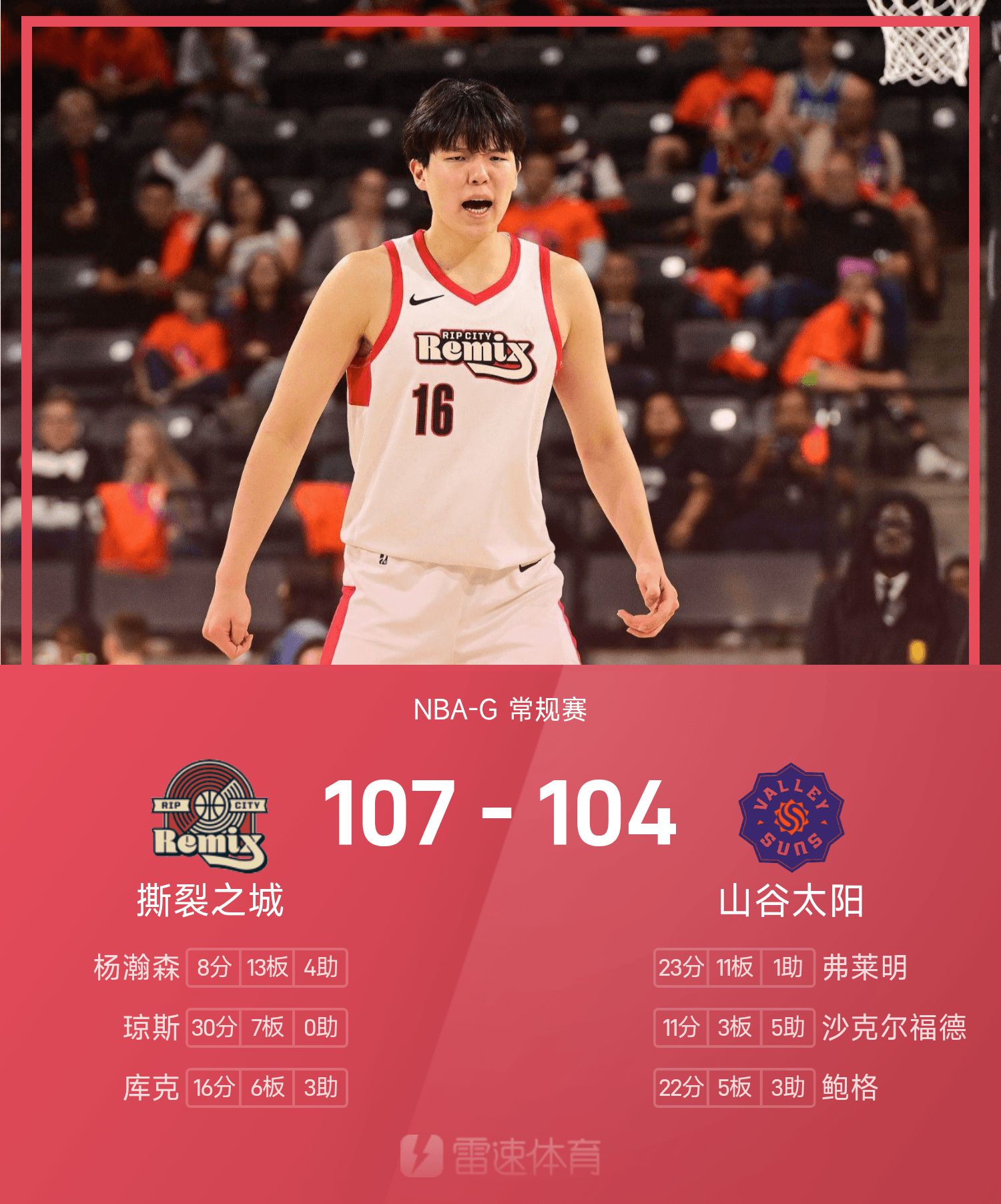 G联赛事战报:杨瀚森8分13板,撕裂之城107-104险胜山谷太阳