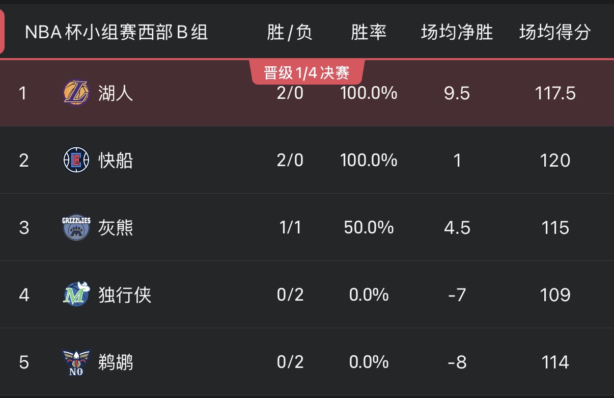 6686体育平台11月15日讯 今日的NBA杯分组赛已经全部终结,而6个小组的排名也发生了变化。