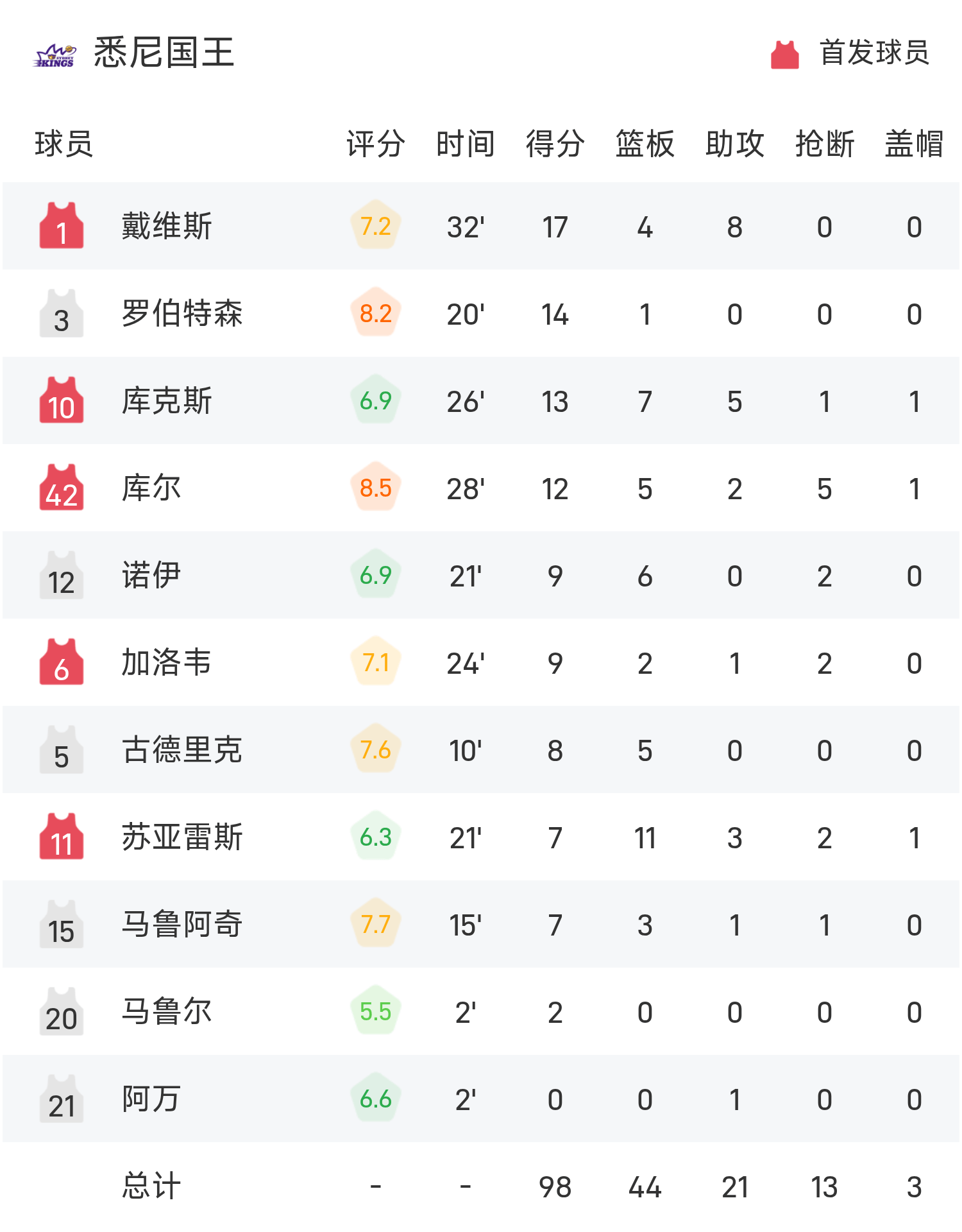 NBL战报:戴维斯17分8助,悉尼国王98-71大胜伊拉瓦拉老鹰