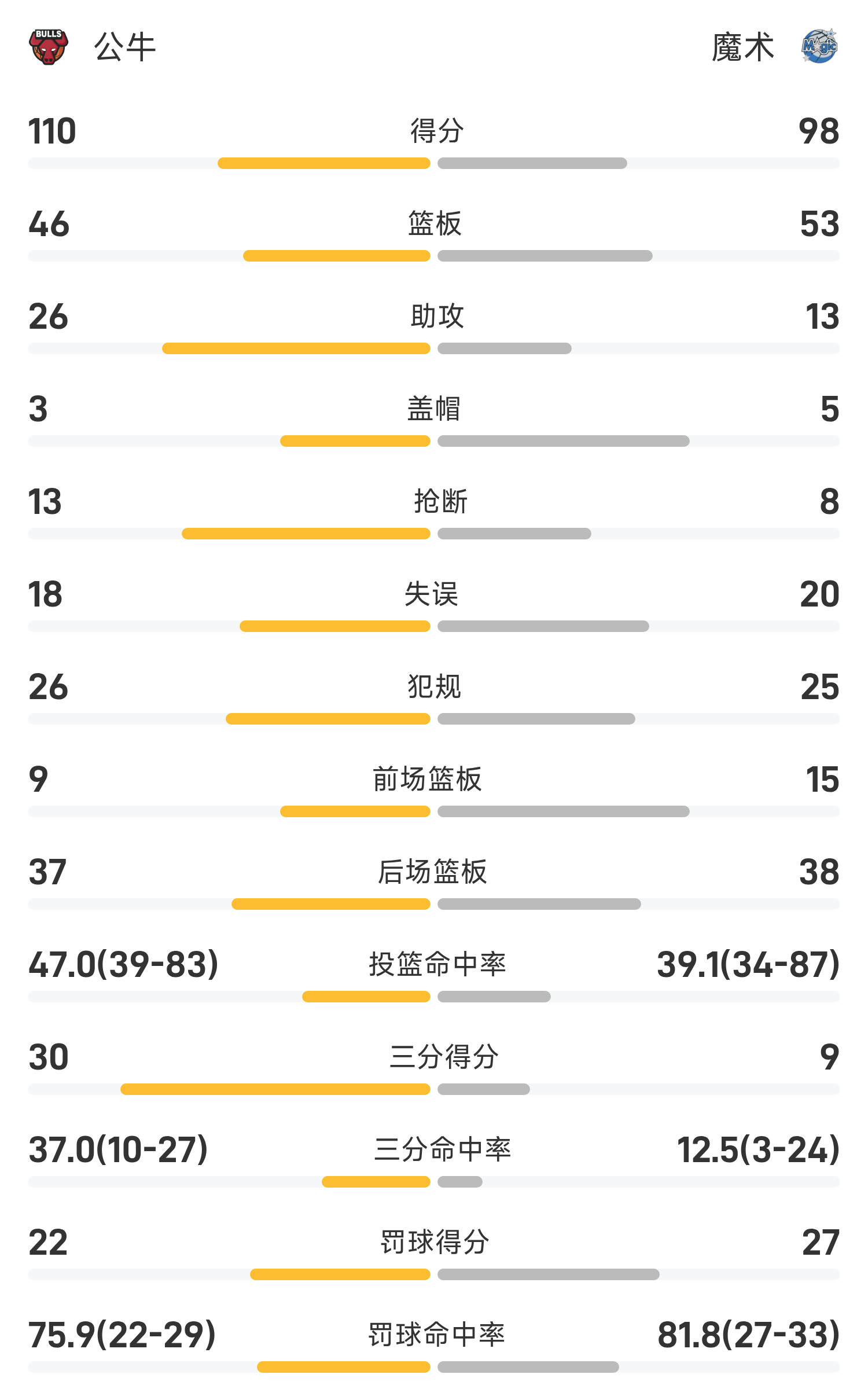 6686体育平台10月26日讯 25/26赛季NBA 常规赛,魔术对阵公牛。