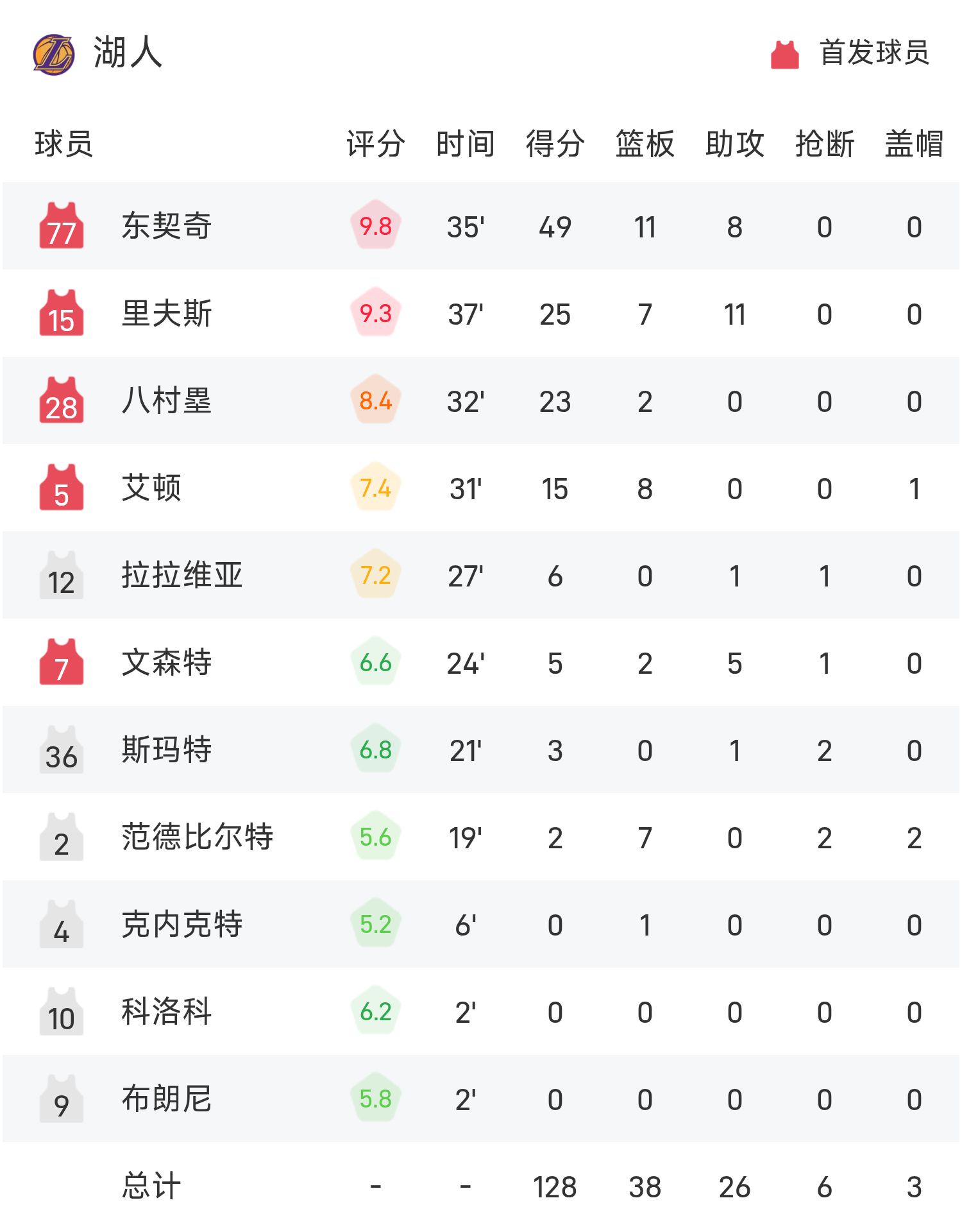 NBA战报:东契奇49分11板8助,湖人128-110轻取森林狼