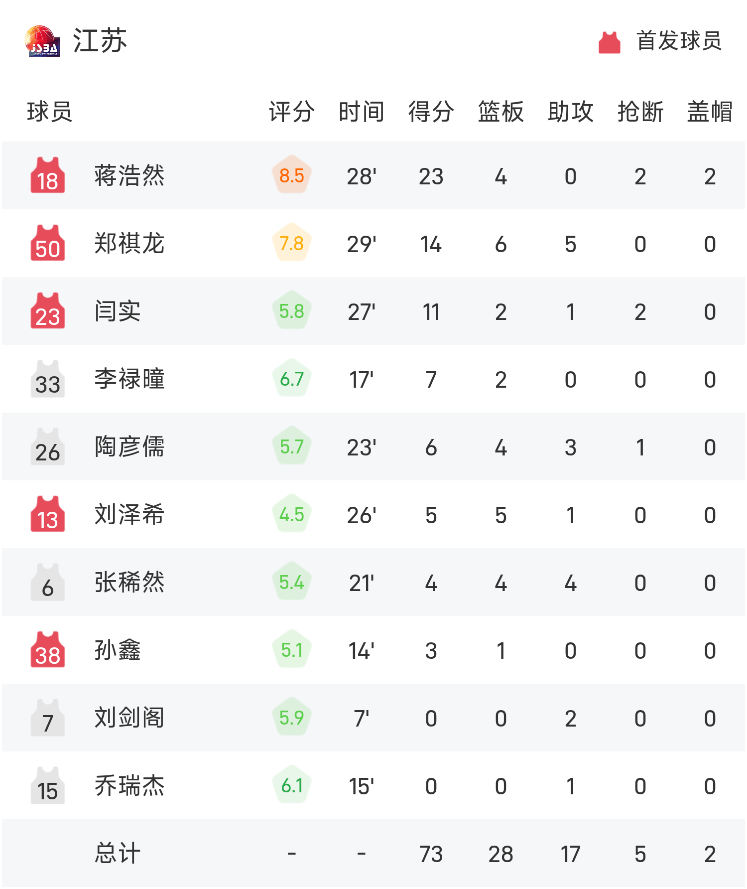 6686体育平台11月06日讯 全运男篮 分组赛,江苏对阵广东。双方全场战罢,江苏73-96不敌广东。徐杰砍下全场最高的29分3板5助,率领广东胜利取胜,江苏半场保持领跑位但第三节仅得9分。