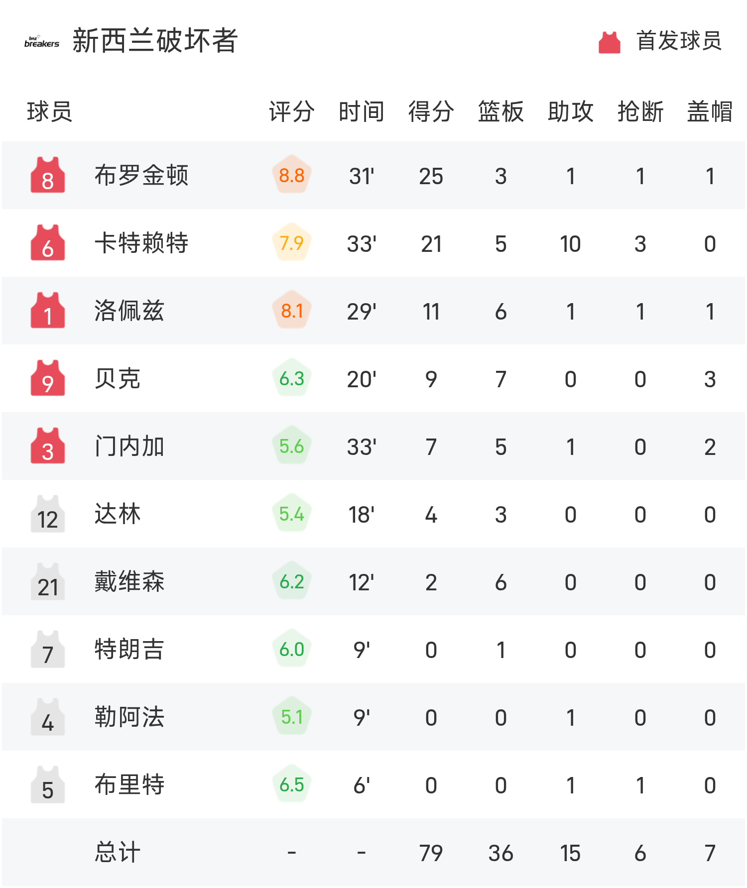 6686体育平台11月06日讯 25/26赛季NBL 常规赛,新西兰毁坏者对阵阿德莱德36人。双方全场战罢,新西兰毁坏者79-83不敌阿德莱德36人。科顿得到23分1板5助率队取胜,布罗金顿空砍全场最高的25分3板1助。