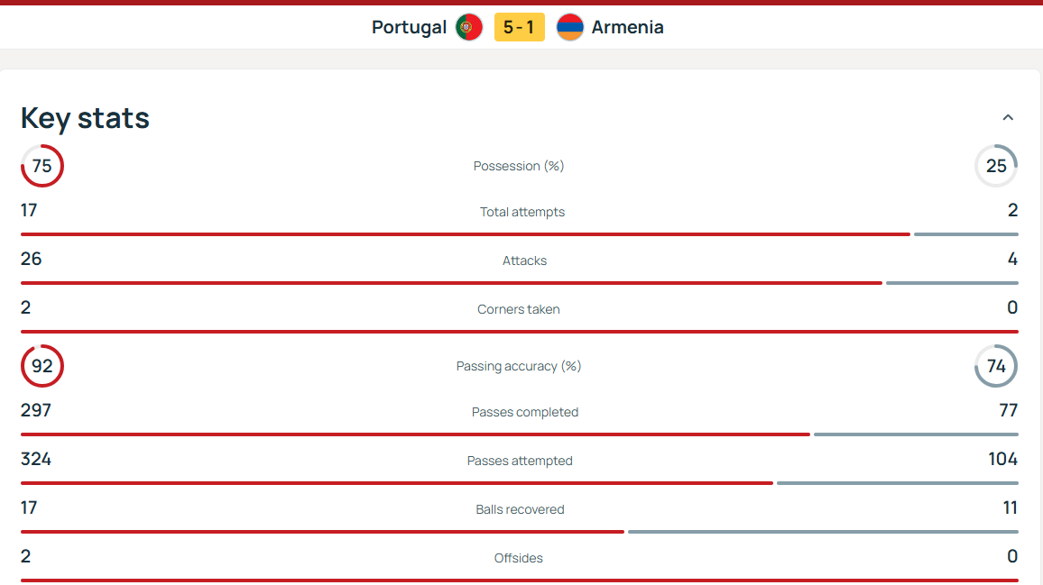 葡萄牙vs亚美尼亚半场数据