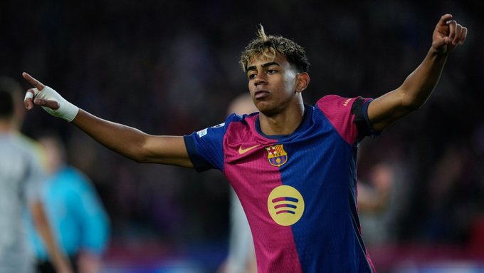 而在竞赛开端前一天,亚马尔又在社交媒体上晒出了上赛季巴萨客队场4-0皇马时的庆祝图。