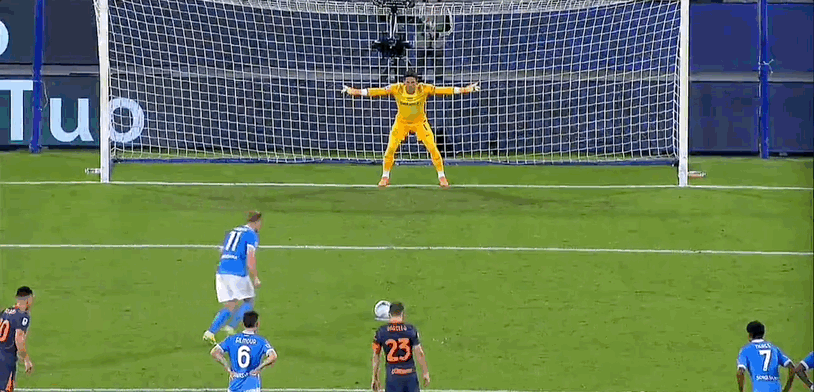 15’劳塔罗三秒区绝佳机会,打门被那不勒斯守门员扑出