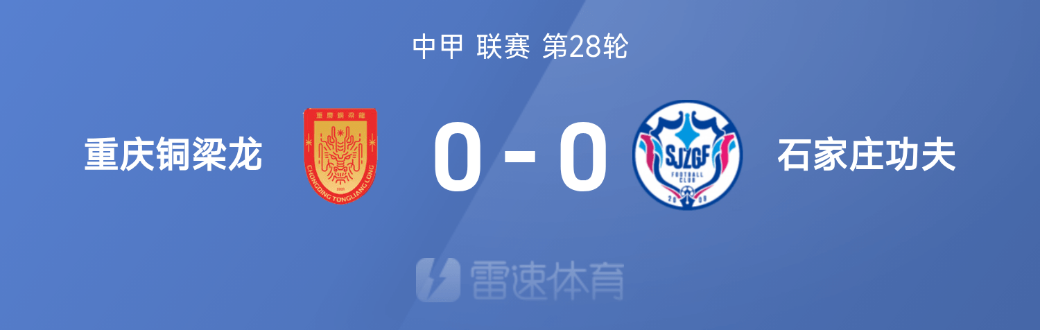 6686体育平台10月26日讯 25赛季中甲联赛事第28轮,重庆铜梁龙0-0互交白卷闷平石家庄功夫。