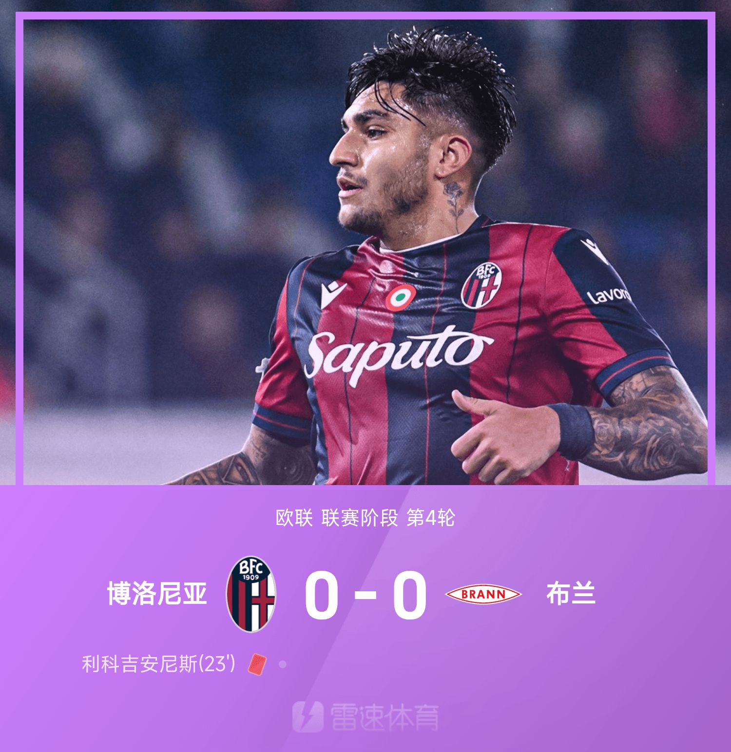 6686体育平台11月07日讯 25/26赛季欧联联赛事阶段第4轮,博洛尼亚坐镇主队场对阵布兰。上半场竞赛利科吉安尼斯染红。全场竞赛,两支球队合计仅有3次打门命中门框范围,竞赛也十分沉闷。最终,十人作战的博洛尼亚在主队场0-0闷平布兰。