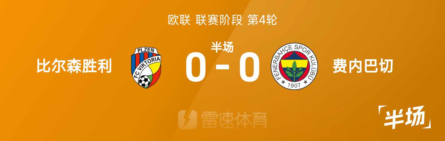 6686体育平台11月07日讯 25/26赛季欧联联赛事阶段第4轮,比尔森胜出局迎战费内巴切。半场战罢,双方赛果分暂为比尔森胜出局0-0费内巴切。