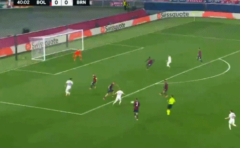 18’险造乌龙!博洛尼亚右路攻击,贝尔纳代斯基传禁区险些弹入球门口